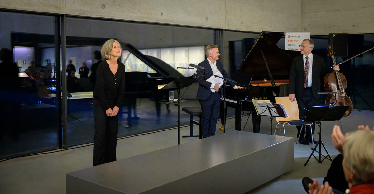 literatur-konzert zu ehren von anita lasker-wallfisch anlässlich ihrer zeugenaussage im belsen-trial vor 80 jahren in der gedenkstätte bergen-belsen